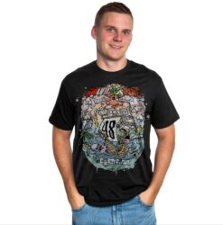 Klassisch geschnittenes Rundhals-Tshirt mit großem Druck auf der Vorderseite. Verstärktes Nackenbandband. Doppelnähte an Bund und Ärmeln.